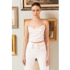 Pútavý top, ktorý prekvapí odhaleným chrbtom. Každý outfit dotiahne k dokonalosti a vďaka príjemnému materiálu a gumičkám, ktoré lemujú chrbát sa postará aj o pohodlie.